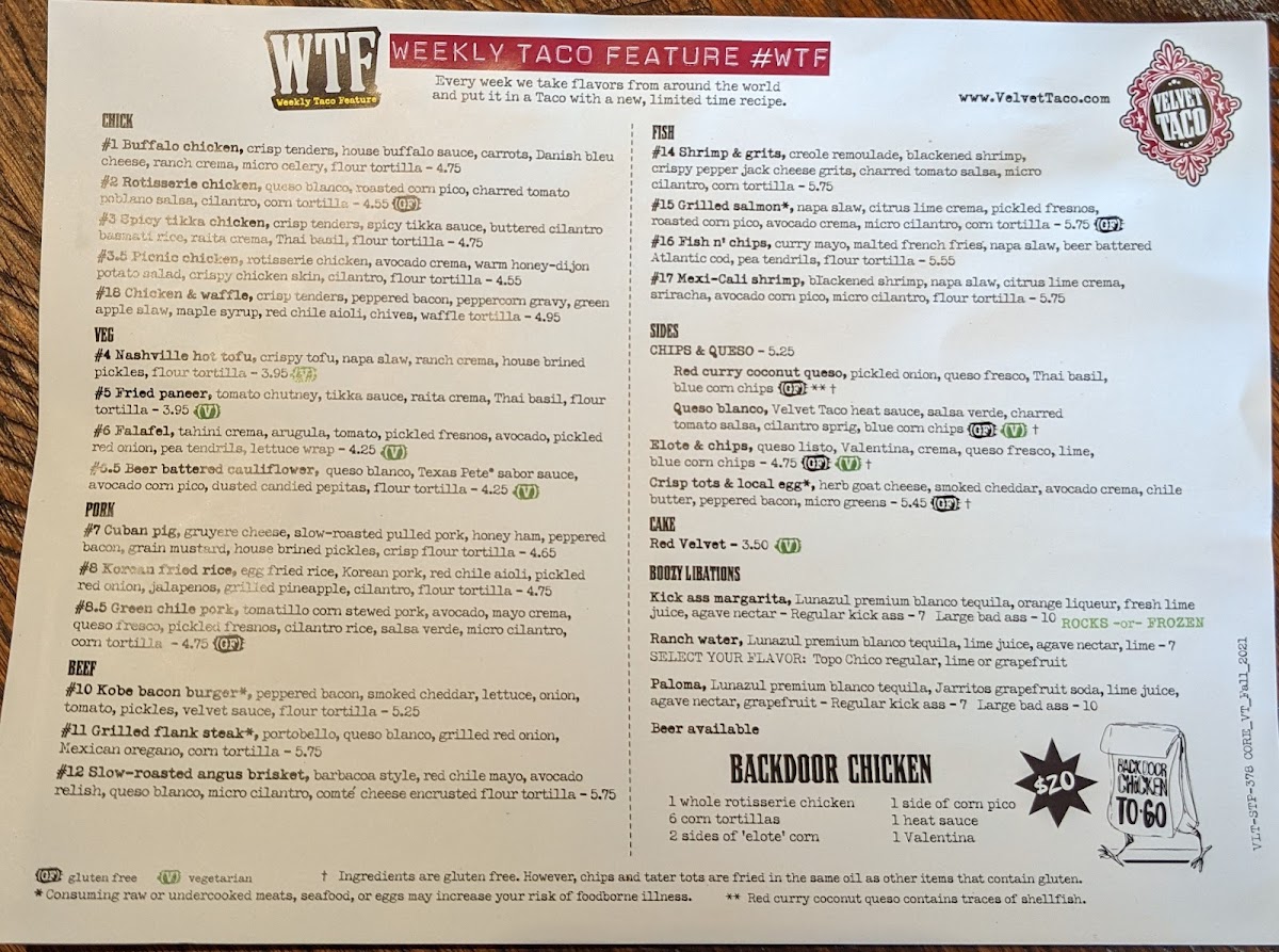 Welcome to Velvet Taco, where innovative flavors meet vibrant Mexican cuisine. Nestled at 1440 W Lindsey St in Norman, OK, this eatery raises the bar for taco lovers. With a menu that harmoniously blends traditional and modern tastes, each dish is crafted to delight.